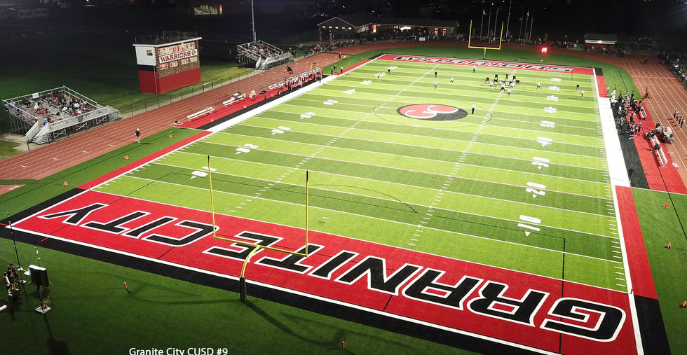 Granite City CUSD #9 Gene Baker Field in Granite City, IL features a premium synthetic turf fields built for football, soccer, and track. The project included base prep, drainage, turf installation and uses RamTurf for durability, safety, and year-round play. Custom field markings, logos and upgrades including lighting and fencing enhance performance and visual appeal. This artificial turf installation reflects expert sports field construction and long-term value.