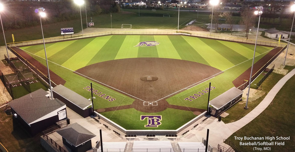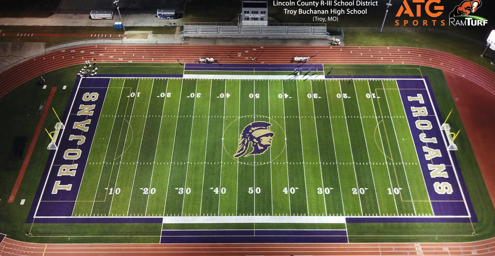 Troy Buchanan High School in Troy, MO features a premium synthetic turf field built for Turf & Track, Baseball/Softball. The project included base prep, drainage, turf installation and uses RamTurf for durability, safety, and year-round play. Custom field markings, logos and upgrades including lighting and fencing enhance performance and visual appeal. This artificial turf installation reflects expert sports field construction and long-term value.